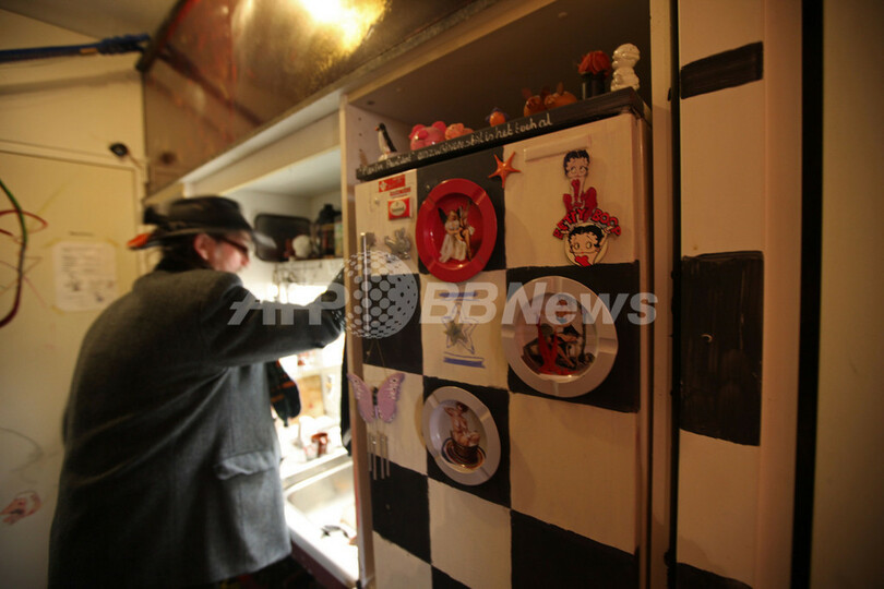 英歌手デヴィッド・ボウイ(David Bowie)のポートレートと、魚が泳ぐ水槽で華やいだ1階の部屋で、トニーさんはタバコの煙を吐き出して、ポケットのビール缶をいじりながら「本当は、ここから出ていきたい」と語る。