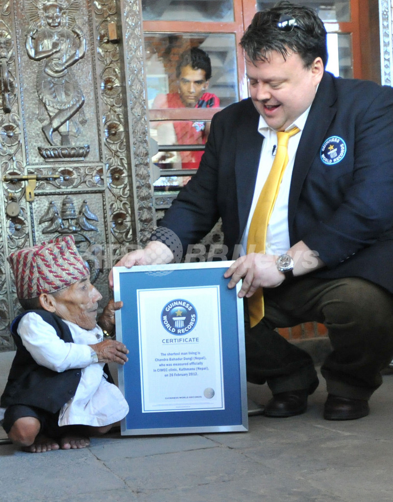 【2月26日 AFP】(写真追加)ネパール南西部の山村に住むチャンドラ・バハドゥール・ダンギ(Chandra Bahadur Dangi)さん(72)が26日、ギネス世界記録(Guinness World Records)の審査員の立会いのもと身長測定を受け、「世界一身長の低い男性」に認定された。