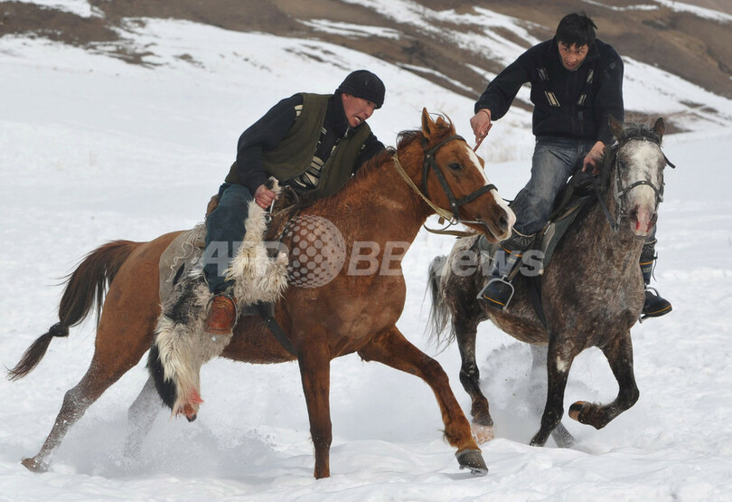 ニュース ライフ 中央アジア伝統の騎馬競技「ブズカシ」、キルギス 2012年2月27日 6:45 発信地:Toguz-Bulak/キルギス [ ロシア・CIS キルギス ] このニュースをシェア ‹ › ❮ 3/5 ❯ 中央アジア・キルギスのToguz-Bulak村で伝統の騎馬競技「ブズカシ(Buzkashi)」を行う現地の人たち(2012年2月25日撮影)。(c)AFP/VYACHESLAV OSELEDKO 画像作成中 ! 【2月27日 AFP】キルギスの首都ビシケク(Bishkek)から60キロ離れたToguz-Bulakの村で25日、ウマに乗って詰め物の入ったヒツジの皮を井戸に投げて得点を競う、中央アジアの伝統競技「ブズカシ(Buzkashi)」の大会が開かれた。(c)AFP ライフ 一覧へ> メディア・報道関係・法人の方向け 写真・動画 購入のお問合せ>