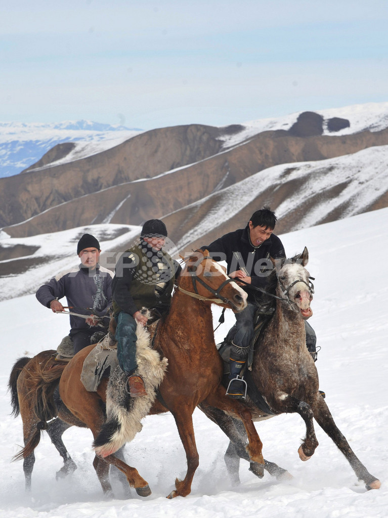 ニュース ライフ 中央アジア伝統の騎馬競技「ブズカシ」、キルギス 2012年2月27日 6:45 発信地:Toguz-Bulak/キルギス [ ロシア・CIS キルギス ] このニュースをシェア ‹ › ❮ 2/5 ❯ 中央アジア・キルギスのToguz-Bulak村で伝統の騎馬競技「ブズカシ(Buzkashi)」を行う現地の人たち(2012年2月25日撮影)。(c)AFP/VYACHESLAV OSELEDKO 画像作成中 ! 【2月27日 AFP】キルギスの首都ビシケク(Bishkek)から60キロ離れたToguz-Bulakの村で25日、ウマに乗って詰め物の入ったヒツジの皮を井戸に投げて得点を競う、中央アジアの伝統競技「ブズカシ(Buzkashi)」の大会が開かれた。(c)AFP ライフ 一覧へ> メディア・報道関係・法人の方向け 写真・動画 購入のお問合せ>