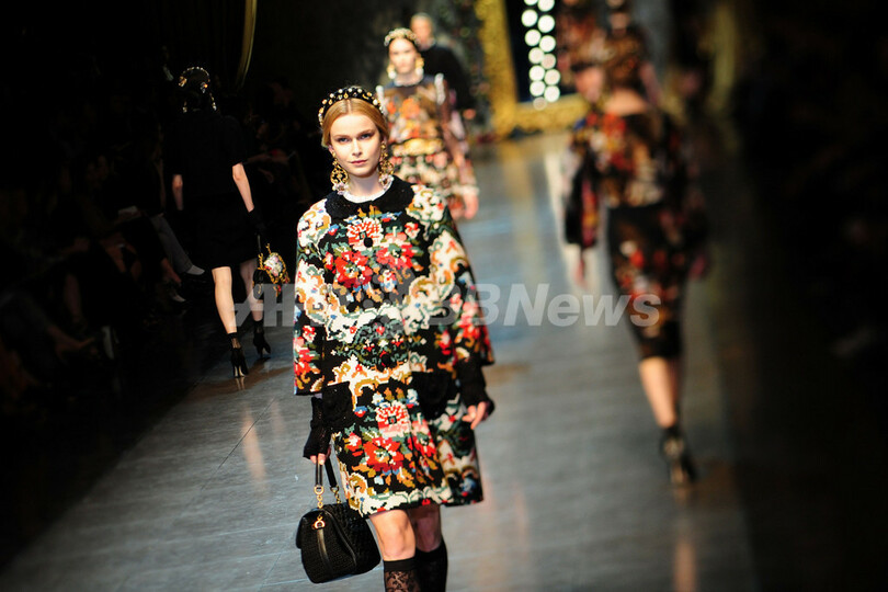 【2月27日 AFP】イタリア・ミラノ市内で21日から28日まで12/13年秋冬ミラノコレクションが開かれている。26日には、ドメニコ・ドルチェ(Domenico Dolce)とステファノ・ガッバーナ(Stefano Gabbana)が手がける「ドルチェ&ガッバーナ(Dolce & Gabbana)」が新作を発表した。(c)AFP