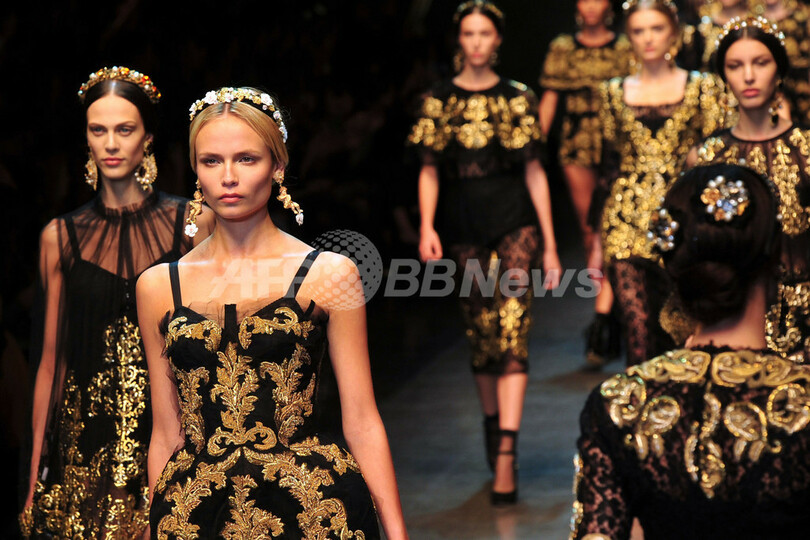 【2月27日 AFP】イタリア・ミラノ市内で21日から28日まで12/13年秋冬ミラノコレクションが開かれている。26日には、ドメニコ・ドルチェ(Domenico Dolce)とステファノ・ガッバーナ(Stefano Gabbana)が手がける「ドルチェ&ガッバーナ(Dolce & Gabbana)」が新作を発表した。(c)AFP