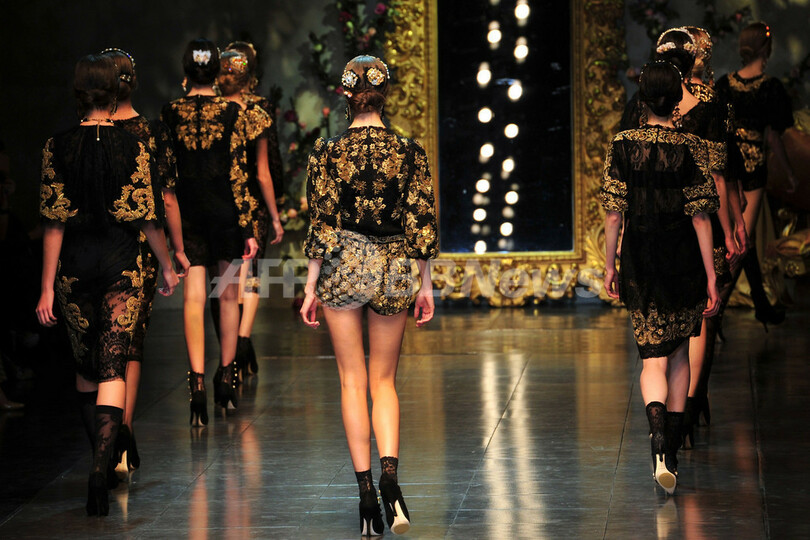 【2月27日 AFP】イタリア・ミラノ市内で21日から28日まで12/13年秋冬ミラノコレクションが開かれている。26日には、ドメニコ・ドルチェ(Domenico Dolce)とステファノ・ガッバーナ(Stefano Gabbana)が手がける「ドルチェ&ガッバーナ(Dolce & Gabbana)」が新作を発表した。(c)AFP