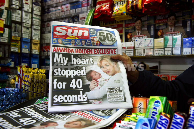 一方で、前年11月以降、情報を得るため警察官らに賄賂を贈った容疑で逮捕されたサン紙の記者ら10人については、公判で有罪が確定しない限りは無実だと主張している。(c)AFP/Roland Jackson
