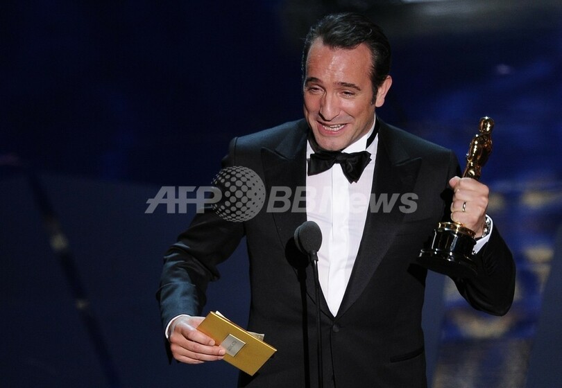 米ハリウッド(Hollywood)で26日開催された第84回アカデミー賞(Academy Awards)授賞式で、主演男優賞の受賞スピーチをするジャン・デュジャルダン(Jean Dujardin、2012年2月26日撮影)。(c)AFP/Robyn BECK