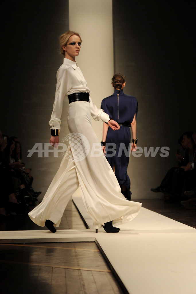 【2月28日 AFP】イタリア・ミラノ市内で21日から28日まで12/13年秋冬ミラノコレクションが開かれている。27日には、フェデリコ・ピアッギ(Federico Piaggi)とステファノ・シトロン(Stefano Citron)が手がける「ジャンフランコ フェレ(Gianfranco Ferre)」が新作を発表した。(c)AFP