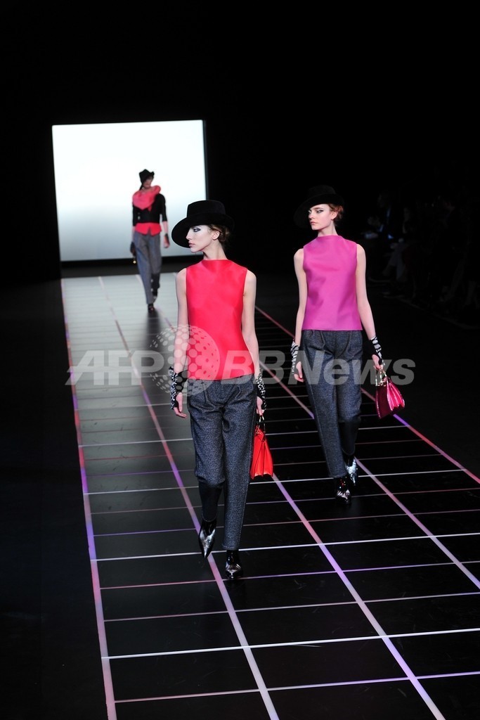 【2月28日 AFP】イタリア・ミラノ市内で21日から28日まで12/13年秋冬ミラノコレクションが開かれている。27日には、「ジョルジオ アルマーニ(GIORGIO ARMANI)」が新作を発表した。(c)AFP