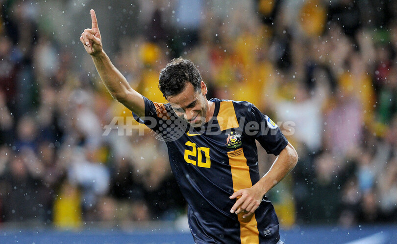 得点を挙げて歓喜するオーストラリアのアレックス・ブロスケ(Alex Brosque、2012年2月29日撮影)。(c)AFP/William WEST