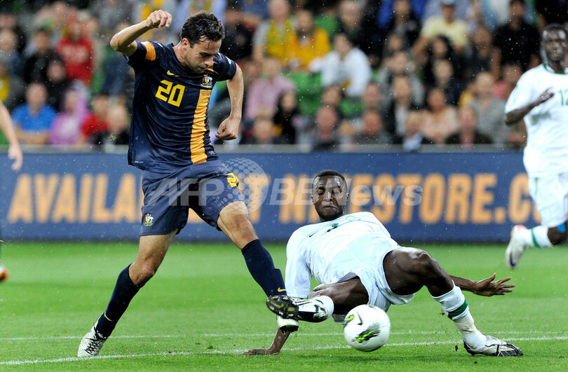 前半43分に同点ゴールを決めるオーストラリアのアレックス・ブロスケ(Alex Brosque、2012年2月29日撮影)。(c)AFP/William WEST