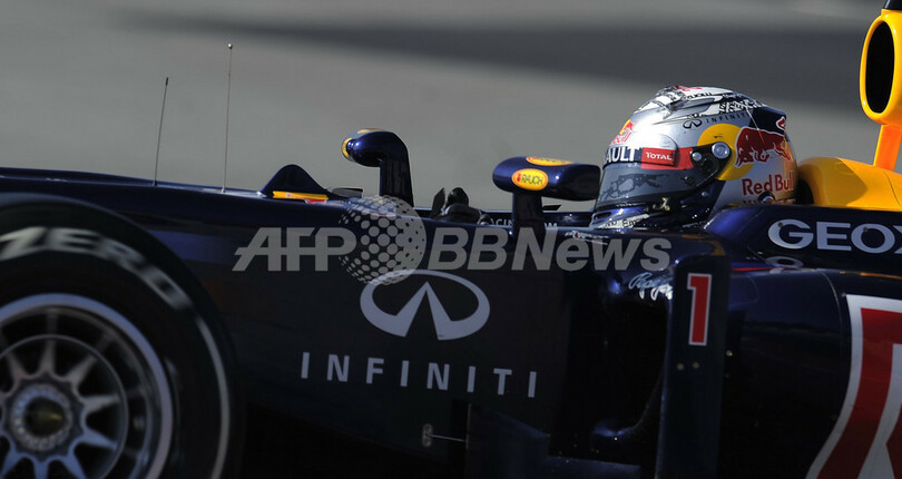 テスト走行で3番手となるベストラップ1分23秒361(85周)を記録したレッドブル(Red Bull)のセバスチャン・ベッテル(Sebastian Vettel、2012年3月2日撮影)。(c)AFP/LLUIS GENE