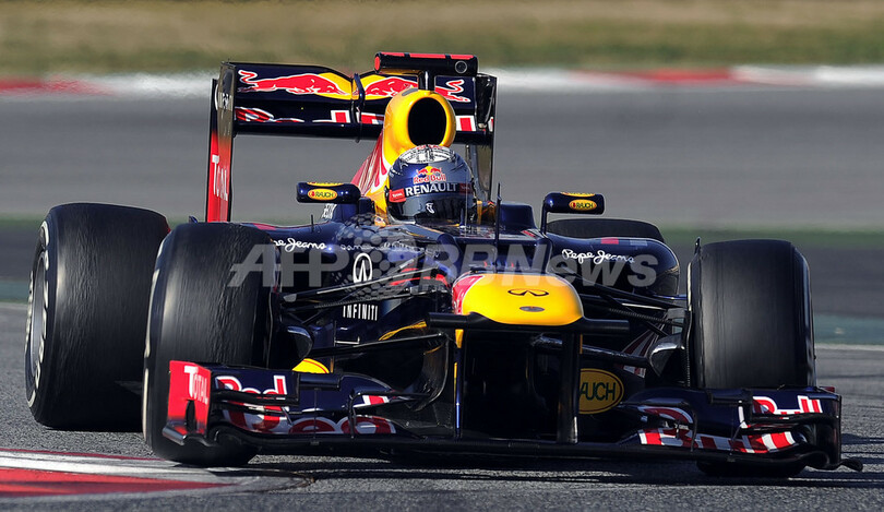 テスト走行で3番手となるベストラップ1分23秒361(85周)を記録したレッドブル(Red Bull)のセバスチャン・ベッテル(Sebastian Vettel、2012年3月2日撮影)。(c)AFP/LLUIS GENE