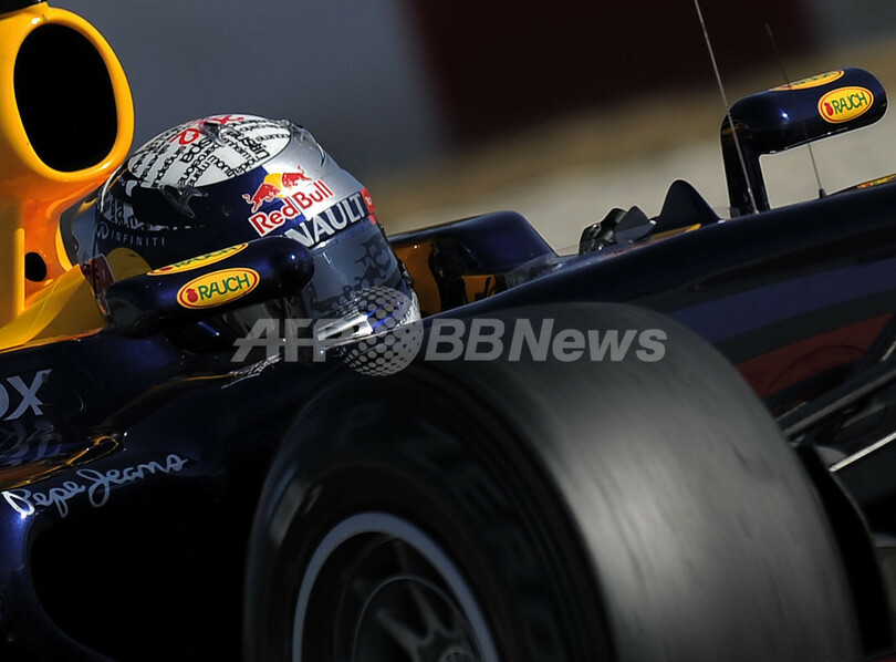 テスト走行で3番手となるベストラップ1分23秒361(85周)を記録したレッドブル(Red Bull)のセバスチャン・ベッテル(Sebastian Vettel、2012年3月2日撮影)。(c)AFP/LLUIS GENE