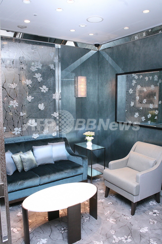 店舗面積は約100坪。ブランドの最新デザインコンセプトを取り入れた都内初のブティックだ。内装はシルバーを基調にブルーやグリーンをア クセントとして取り入れ、壁面にジュエリーのスケッチ画やアート作品を展示。店舗奥には、ソファでくつろぎながらジュエリーを試すことができる個室も設置した。