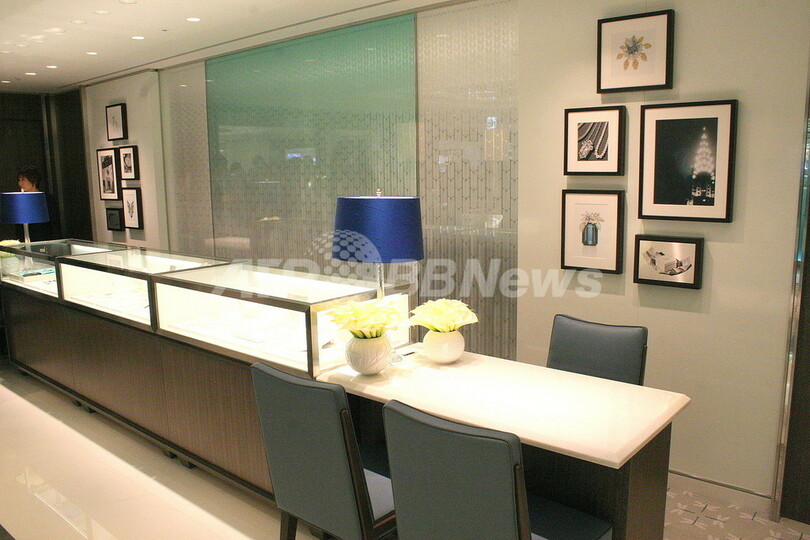 店舗面積は約100坪。ブランドの最新デザインコンセプトを取り入れた都内初のブティックだ。内装はシルバーを基調にブルーやグリーンをア クセントとして取り入れ、壁面にジュエリーのスケッチ画やアート作品を展示。店舗奥には、ソファでくつろぎながらジュエリーを試すことができる個室も設置した。