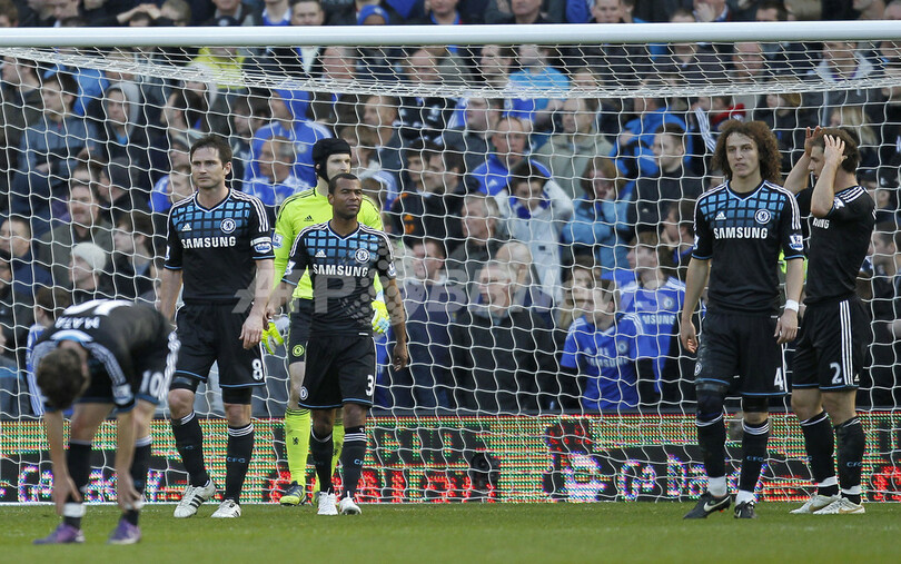 後半37分に先制点を許し、落胆した様子を見せるチェルシーの選手(2012年3月3日撮影)。(c)AFP/IAN KINGTON
