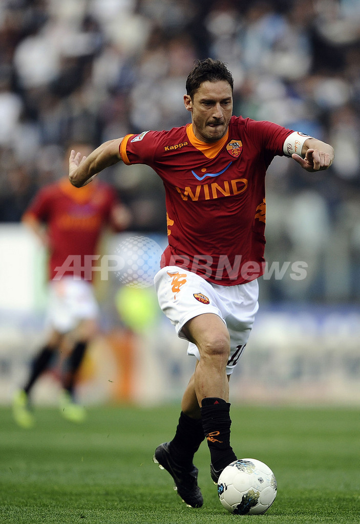 ドリブルでボールを運ぶASローマのフランチェスコ・トッティ(Francesco Totti、2012年3月4日撮影)。(c)AFP/Filippo MONTEFORTE