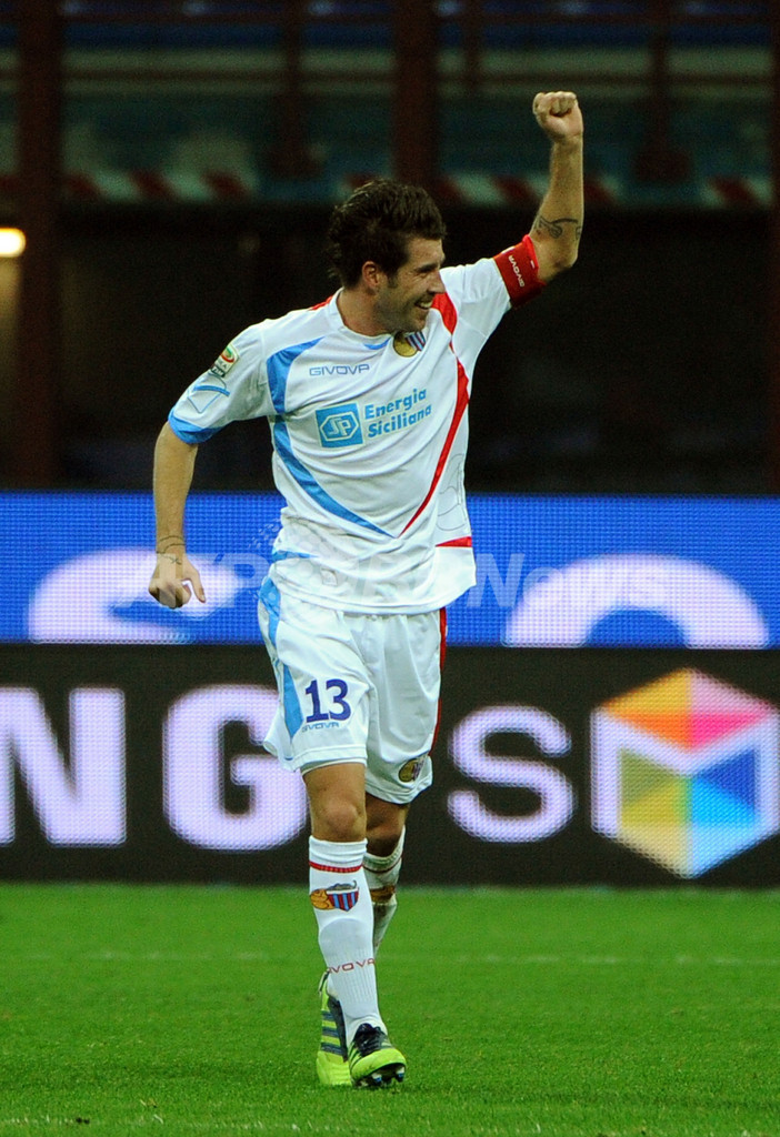 前半20分に先制点を挙げて歓喜するカターニアのアレハンドロ・ゴメス(Alejandro Gomez、2012年3月4日撮影)。(c)AFP/OLIVIER MORIN
