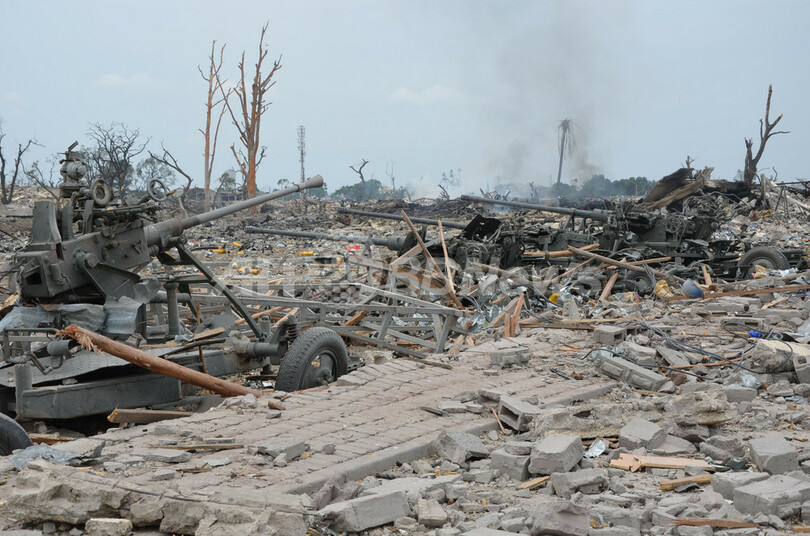 軍関係者によると、爆発で最初に破壊された武器庫から100メートルほど離れている武器集積所も、近くで発生した火災により爆発の危険があるという。