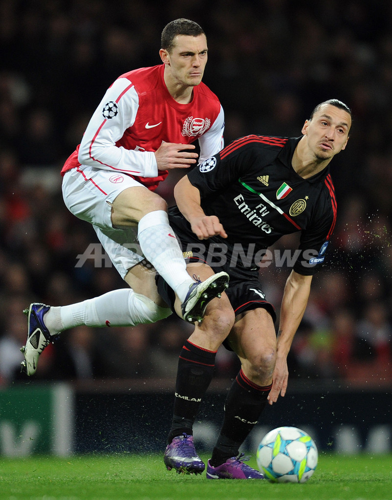 【3月7日 AFP】(記事更新、写真追加)サッカー欧州チャンピオンズリーグ2011-12(UEFA Champions League 2011-12)は6日、決勝トーナメント1回戦の第2戦が行われ、ACミラン(AC Milan)は0-3でアーセナル(Arsenal)に敗れたものの、2試合合計スコアを4-3として準々決勝に進出した。