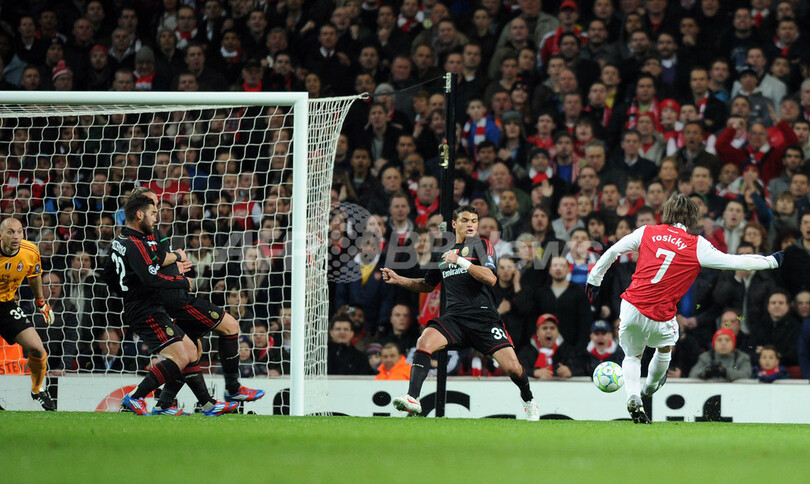 前半7分、アレックス・オックスレイド・チェンバレン(Alex Oxlade-Chamberlain)の左コーナーキック(CK)にコシールニーが頭で合わせて先制したアーセナルは、同26分にはテオ・ウォルコット(Theo Walcott)のクロスをチアゴ・シウバ(Thiago Silva)がクリアすると、そのこぼれ球をペナルティーエリア内で拾ったロシツキーがミランのGKクリスティアン・アッビアーティ(Christian Abbiati)の足下に流し込み、追加点を奪った。