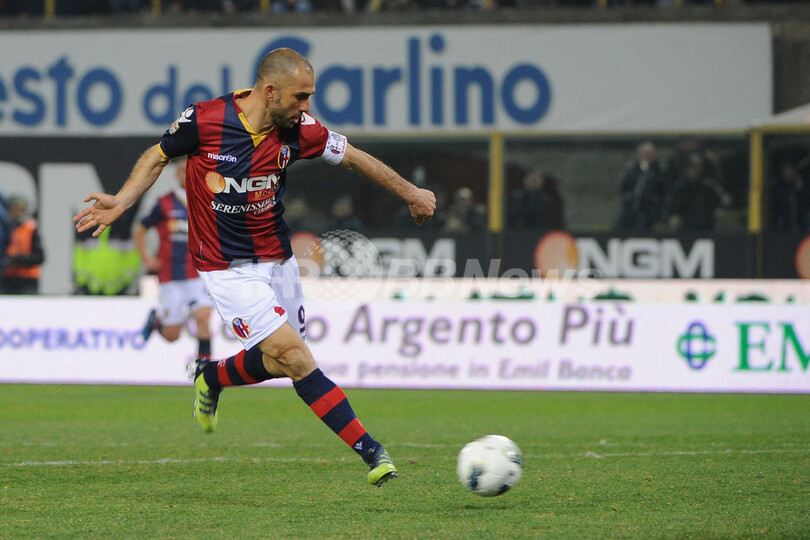 前半17分に先制点を挙げるボローニャのマルコ・ディ・バイオ(Marco Di Vaio、2012年3月7日撮影)。(c)AFP/OLIVIER MORIN
