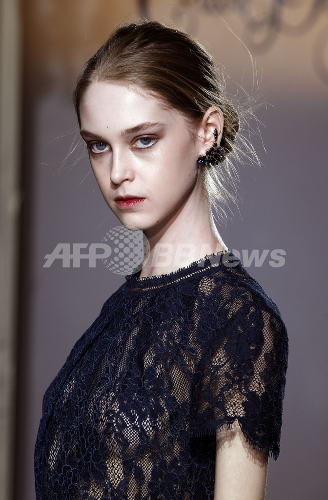 【3月8日 AFP】フランス・パリ市内で2月28日から7日まで12/13年秋冬パリコレクションが開かれた。7日には「コレット・ディニガン(Collette Dinnigan)」が新作を発表した。(c)AFP