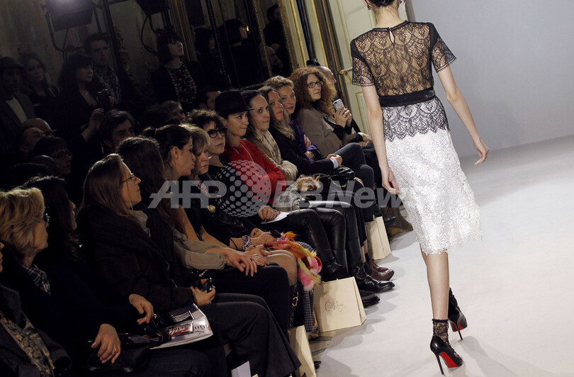 【3月8日 AFP】フランス・パリ市内で2月28日から7日まで12/13年秋冬パリコレクションが開かれた。7日には「コレット・ディニガン(Collette Dinnigan)」が新作を発表した。(c)AFP