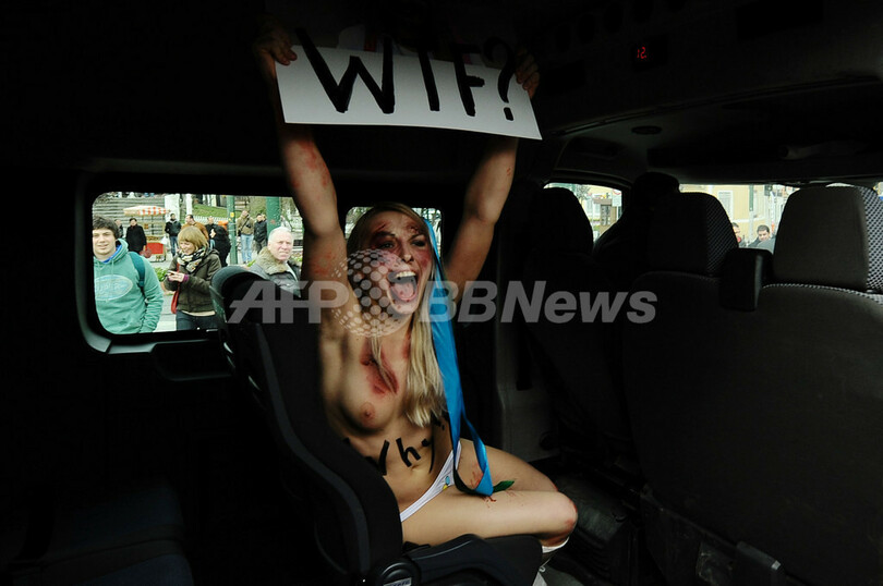 写真はトルコのイスタンブール(Istanbul)で、ドメスティックバイオレンスに抗議するウクライナの女性権利団体「FEMEN」のメンバー(2012年3月8日撮影)。(c)AFP/MUSTAFA OZER