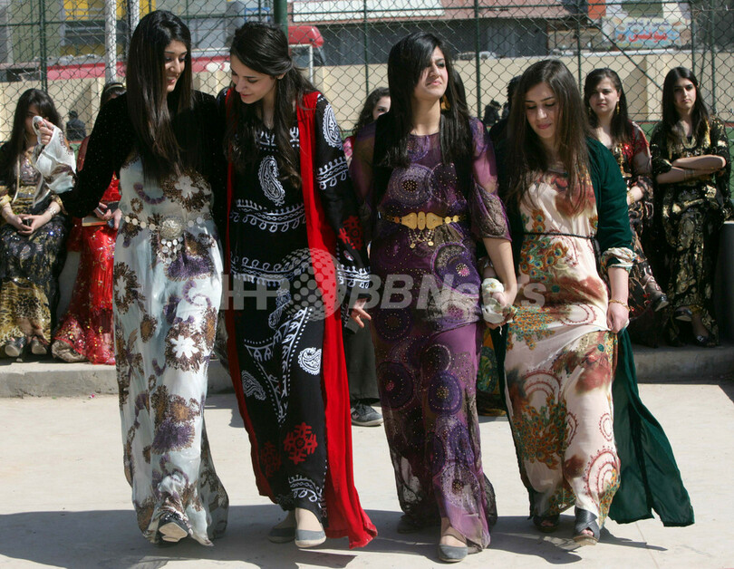 写真はイラク・アルビル(Arbil)で、クルドの伝統衣装に身を包んで国際女性の日を祝う学生たち(2012年3月8日撮影)。(c)AFP/SAFIN HAMED