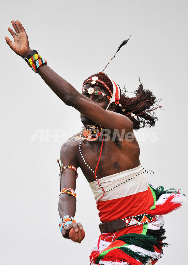 写真はモンバサの競技場で練習する「マサイ・ウォリアーズ」のメンバー(2012年3月5日撮影)。(c)AFP/Carl de Souza