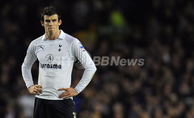 試合に敗れ落胆した様子を見せるトッテナム・ホットスパーのギャレス・ベイル(Gareth Bale、2012年3月10日撮影)。(c)AFP/ANDREW YATES