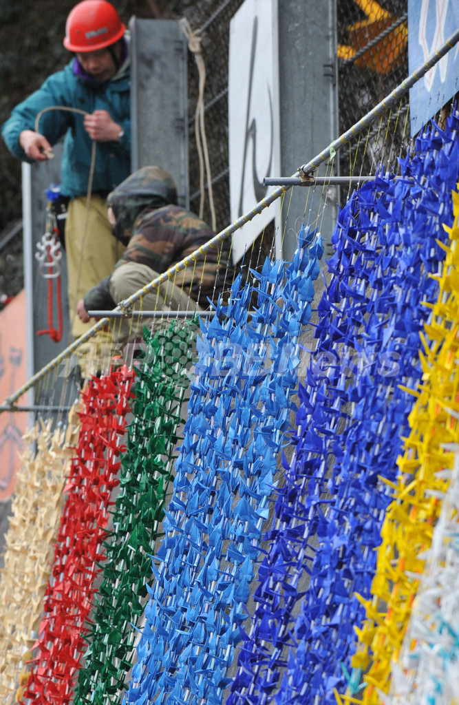 ニュース 社会 震災から1年、南三陸町に追悼の折り鶴 2012年3月11日 11:43 発信地:宮城 [ アジア・オセアニア 宮城 ] このニュースをシェア ‹ › ❮ 2/5 ❯ 宮城県南三陸町で飾り付けが行われる、東日本大震災犠牲者への追悼を込めた折り鶴(2012年3月10日撮影)。(c)AFP/KAZUHIRO NOGI 画像作成中 ! 【3月11日 AFP】宮城県南三陸町で10日、東日本大震災犠牲者への追悼を込めた折り鶴の飾り付けが行われた。(c)AFP 社会 一覧へ> メディア・報道関係・法人の方向け 写真・動画 購入のお問合せ>