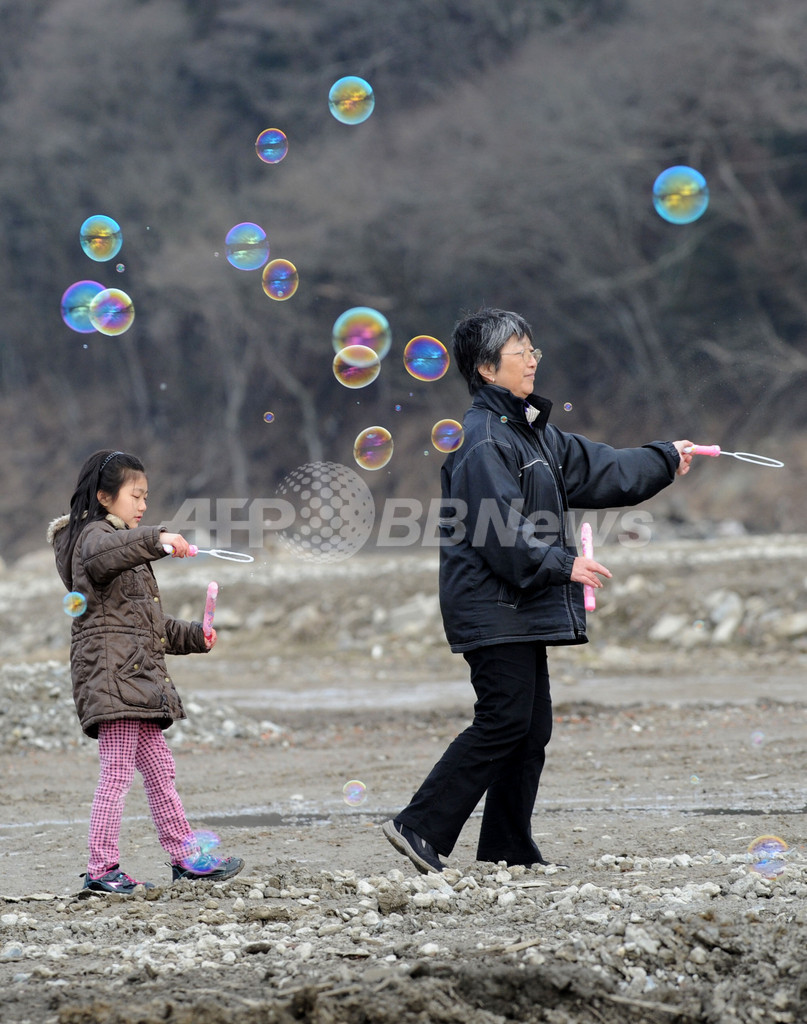 ニュース ライフ 被災地・大川小に飛ぶシャボン玉 2012年3月11日 17:57 発信地:宮城 [ アジア・オセアニア 宮城 ] このニュースをシェア ‹ › ❮ 1/5 ❯ 宮城県石巻市、大川小学校そばでシャボン玉を飛ばす家族(2012年3月11日撮影)。(c)AFP/KAZUHIRO NOGI 画像作成中 ! 【3月11日 AFP】東日本大震災から1年を迎えた11日、追悼行事の行われた宮城県石巻市の大川小学校で、シャボン玉を飛ばす子どもと祖母の姿が見られた。同小学校では震災で児童74人が死亡・行方不明になっている。(c)AFP ライフ 一覧へ> メディア・報道関係・法人の方向け 写真・動画 購入のお問合せ>