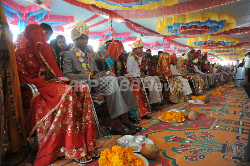 【3月12日 AFP】「売春婦の村」の異名で知られるインド・グジャラート(Gujarat)州バディア(Vadia)村で11日、セックスワーカー(性労働者)を母親に持つ若い女性8人が集団結婚式を挙げた。「世界最古の職業」に就く悪しき伝統から女性たちを守ろうという5年越しの試みだ。