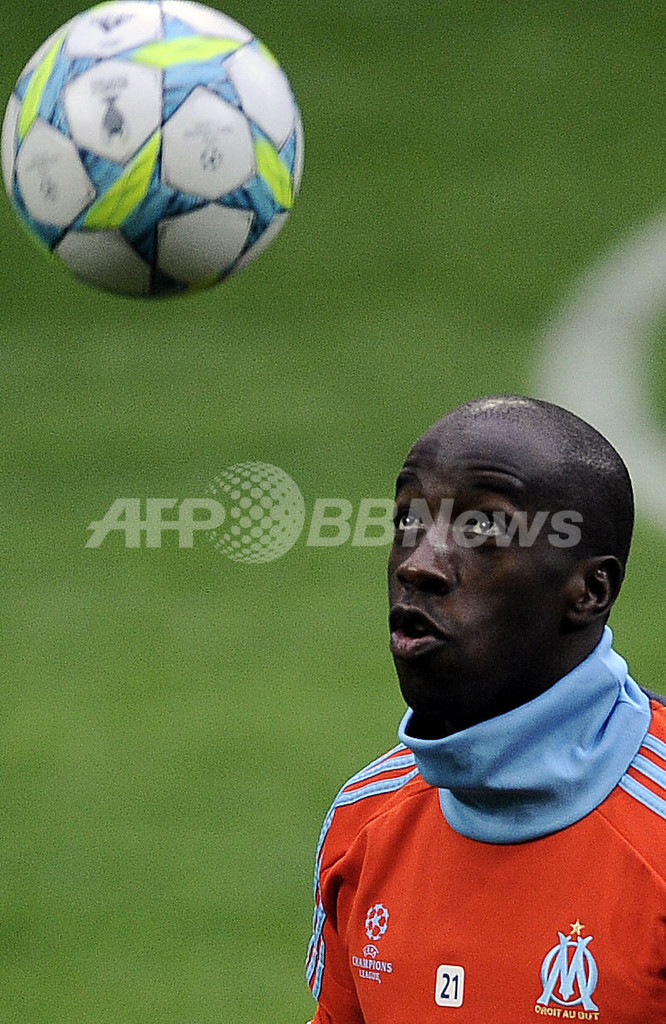 調整を行うオリンピック・マルセイユのアル・ディアッラ(Alou Diarra、2012年3月12日撮影)。(c)AFP/FILIPPO MONTEFORTE