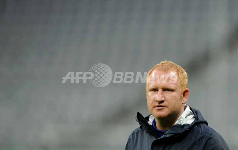練習を見守るFCバーゼルのハイコ・フォーゲル監督(Heiko Vogel、2012年3月12日撮影)。(c)AFP/CHRISTOF STACHE