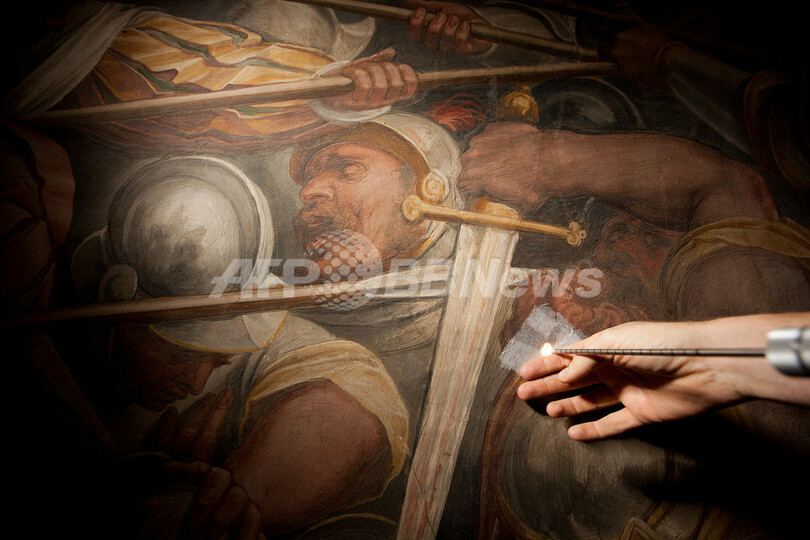 【3月13日 AFP】イタリアの美術史家率いる調査チームは12日、フィレンツェ(Florence)にあるベッキオ(Vecchio)宮殿で、レオナルド・ダビンチ(Leonardo da Vinci、1452~1519)の壁画『アンギアーリの戦い(Battle of Anghiari)』が現存する可能性を示す手がかりが見つかったことを発表した。