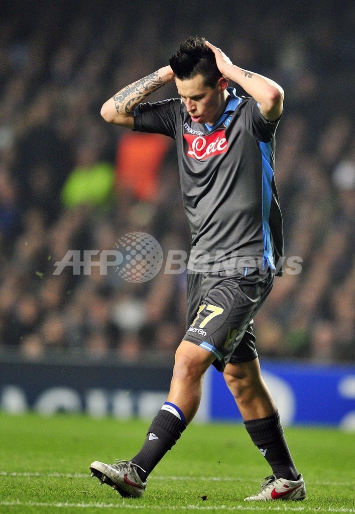 試合終了後、落胆するナポリのマレク・ハムシク(Marek Hamsik、2012年3月14日撮影)。(c)AFP/GLYN KIRK