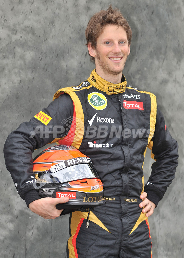 ポーズをとるロマン・グロージャン(2012年3月15日撮影)。(c)AFP/Paul CROCK