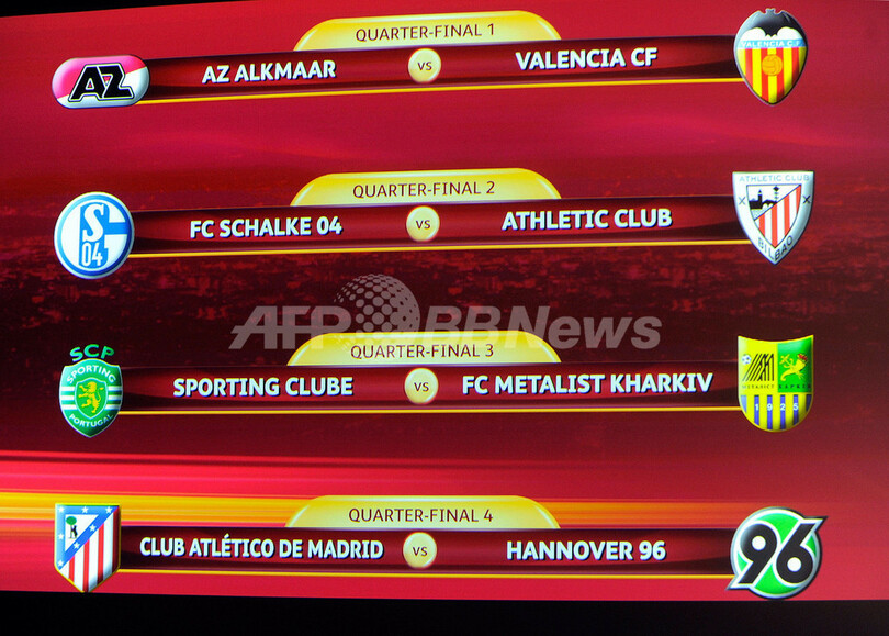 【3月17日 AFP】サッカーヨーロッパリーグ2011-12(UEFA Europa League 2011-12)の準々決勝および準決勝の抽選会が16日、スイスのニヨン(Nyon)で行われた。