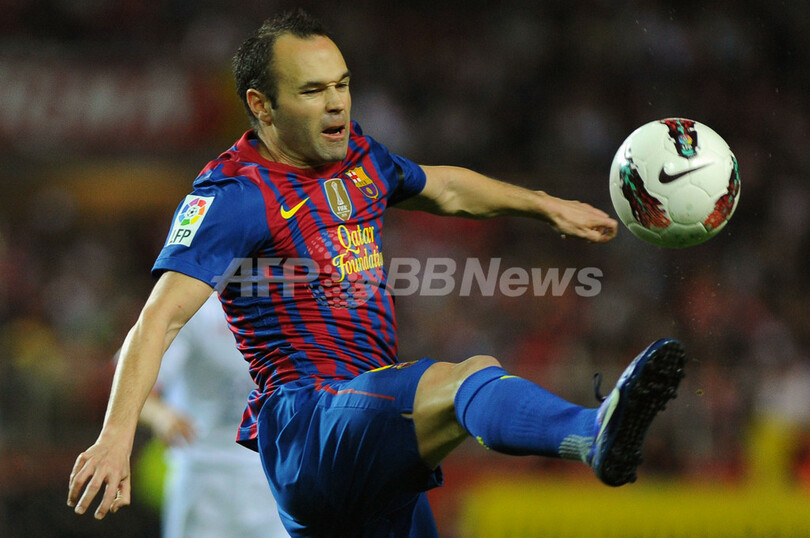 ボールをコントロールするFCバルセロナのアンドレス・イニエスタ(Andres Iniesta、2012年3月17日撮影)。(c)AFP/JORGE GUERRERO