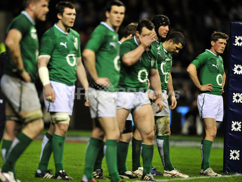 試合に敗れ、落胆した様子を見せるアイルランドの選手(2012年3月17日撮影)。(c)AFP/GLYN KIRK
