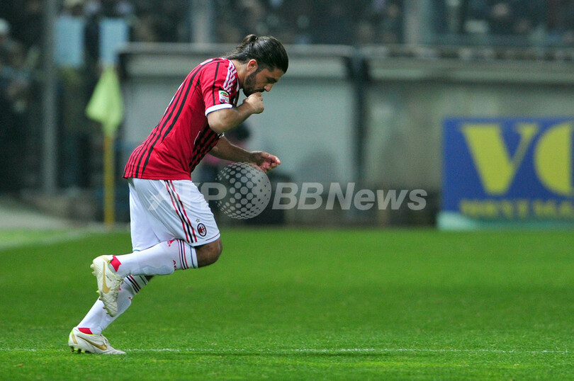 後半ロスタイムに途中出場するACミランのジェンナロ・ガットゥーゾ(Gennaro Gattuso、2012年3月17日撮影)。(c)AFP/GIUSEPPE CACACE
