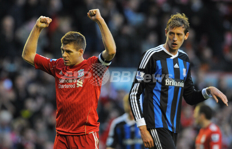 前半23分にルイス・スアレス(Luis Suarez)のゴールで先制したリバプールは、直後の同26分にストーク・シティのピーター・クラウチ(Peter Crouch)に同点ゴールを許したものの、後半12分にスチュワート・ダウニング(Stewart Downing)が決勝点を奪い、本拠地アンフィールド(Anfield)で勝利を収めた。(c)AFP