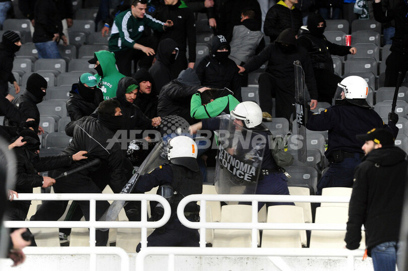 【3月19日 AFP】ギリシャの首都アテネ(Athens)で18日に行われたサッカーギリシャ1部リーグ第25節の試合で暴動が発生し、オリンピアコス(Olympiacos)とパナシナイコス(Panathinaikos)によるギリシャ・ダービーは中止になった。