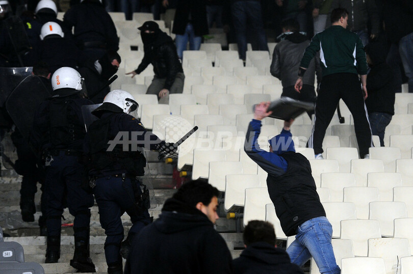 【3月19日 AFP】ギリシャの首都アテネ(Athens)で18日に行われたサッカーギリシャ1部リーグ第25節の試合で暴動が発生し、オリンピアコス(Olympiacos)とパナシナイコス(Panathinaikos)によるギリシャ・ダービーは中止になった。