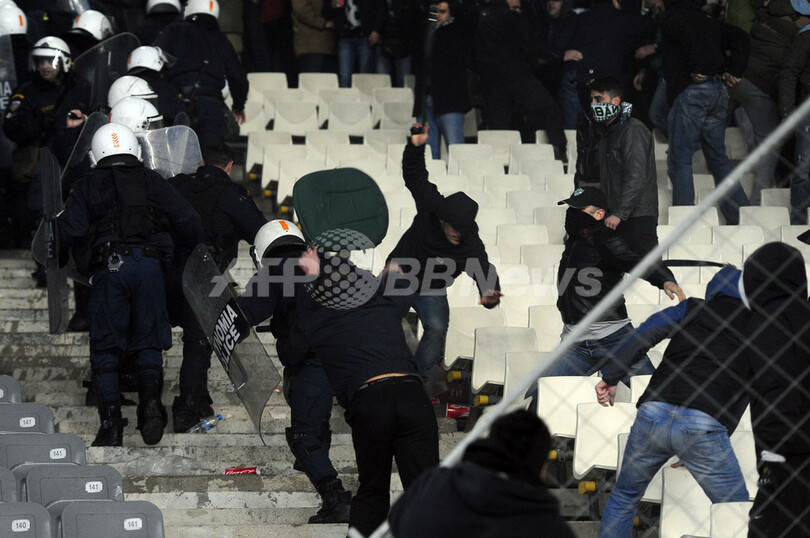 【3月19日 AFP】ギリシャの首都アテネ(Athens)で18日に行われたサッカーギリシャ1部リーグ第25節の試合で暴動が発生し、オリンピアコス(Olympiacos)とパナシナイコス(Panathinaikos)によるギリシャ・ダービーは中止になった。