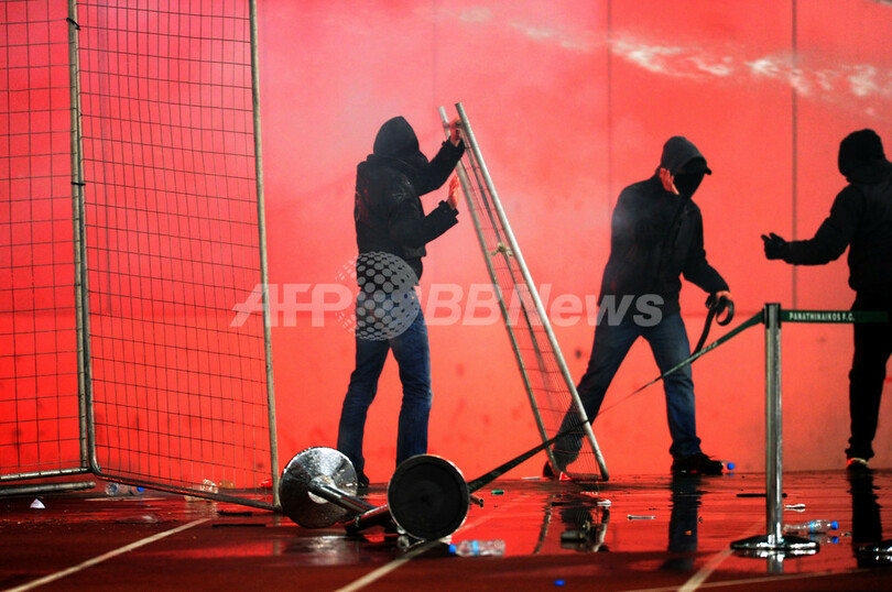 【3月19日 AFP】ギリシャの首都アテネ(Athens)で18日に行われたサッカーギリシャ1部リーグ第25節の試合で暴動が発生し、オリンピアコス(Olympiacos)とパナシナイコス(Panathinaikos)によるギリシャ・ダービーは中止になった。