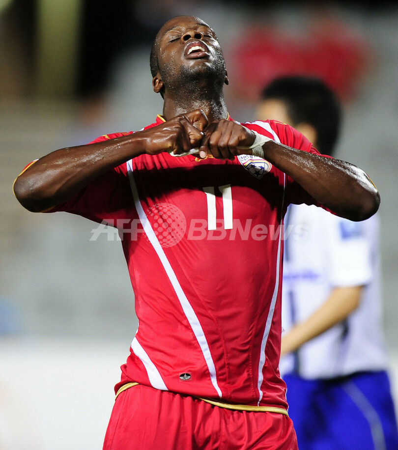 得点機を逃し落胆するアデレード・ユナイテッドのブルース・ジテ(Bruce Djite、2012年3月20日撮影)。(c)AFP/DAVID MARIUZ
