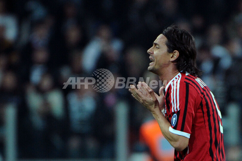 落胆した様子を見せるACミランのフィリッポ・インザーギ(Filippo Inzaghi、2012年3月20日撮影)。(c)AFP/OLIVIER MORIN